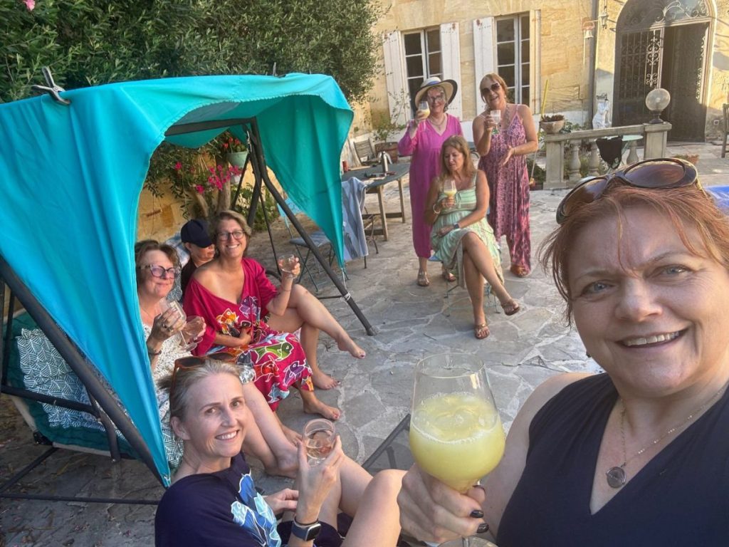 Well, on the very first morning after a wonderful breakfast, in France, in 28° heat, sitting in shade by the pool, we had our first session. I told Julie Cohen, my lovely long suffering mentor, that I’ve made a commitment to get the first draft finished by the 31st of August. And she said “knowing how you write when you put your mind to it, if you can get it done by the 31st of August, you could get it done by the end of this week!’ and with the prospect of piña coladas all round, on the Saturday night, if I finished by then, something happened.