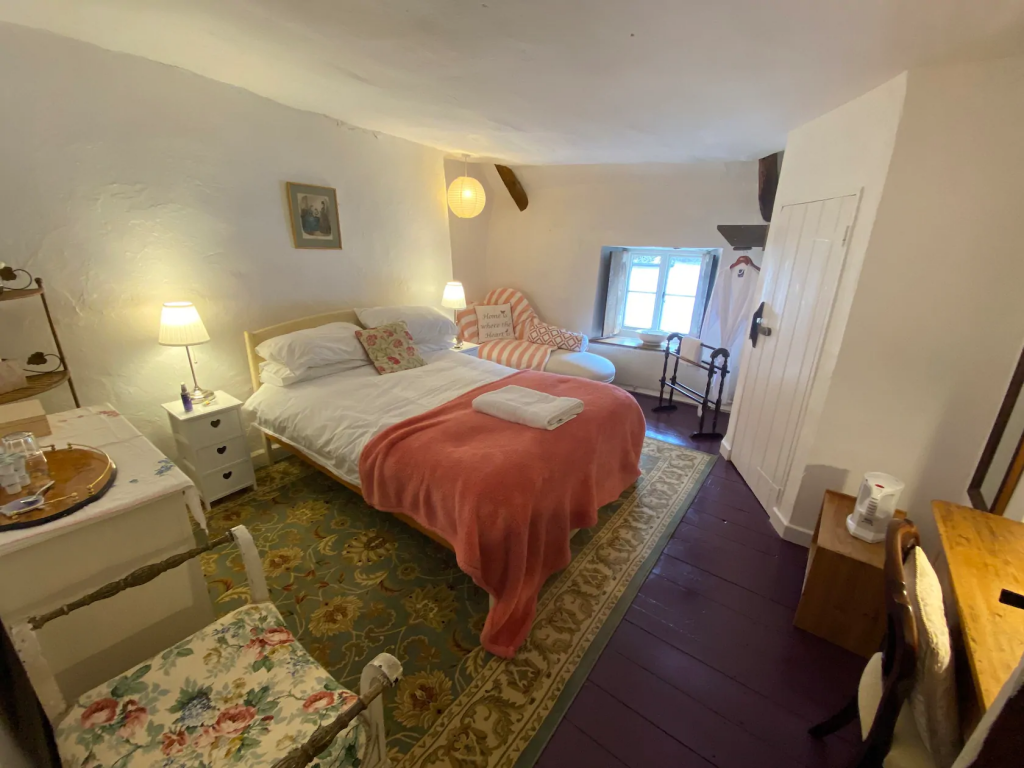We are in a village Square location, in a picturesque and sleepy part of North Devon. Ample parking. Well-stocked little village shop open for a couple of hours a day, and a wonderful Gastro pub (in normal circumstances) the Halfmoon Inn just opposite.) Oil fired central heating in almost every room, on a timer. Please bring warm footwear because the house is very old and it can get cold underfoot.